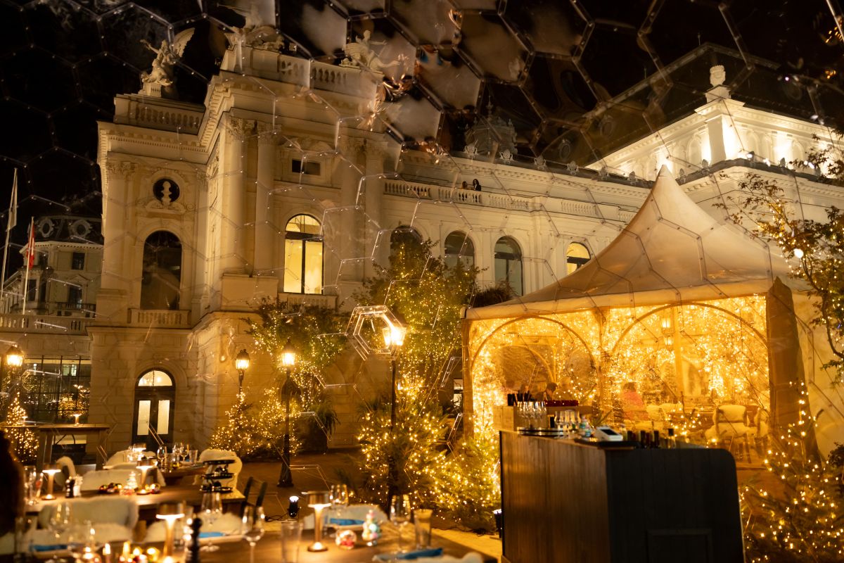 Diese Vorweihnachtszeit wird die Festtagsstimmung noch schöner als je zuvor. Auf der Terrasse von Lulu gleich neben dem Opernhaus schlagen wir erneut unser transparentes Kuppel Festzelt direkt vor dem in ein glimmendes Lichtermeer getauchten Chapiteau-Zelt auf. Dieses bietet ein rundum einzigartiges Raumvergnügen, in dem man sich wie in einer traumhaften Schneekugel fühlt. Mit Blick auf die herrliche Weihnachtsstimmung auf dem Sechseläutenplatz kommen hier oben wunderbare Festtagsgefühle auf.